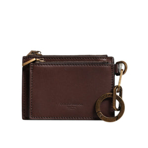 Dolce & Gabbana Brown Leather Zip Logo Keyring Coin Purse Keyring Wallet