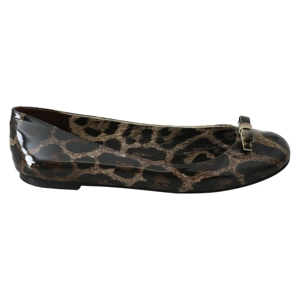 Dolce & Gabbana Brown Leopard Ballerina Flats Leather Shoes