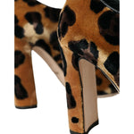 Dolce & Gabbana Brown Leopard Hair Lace Up Booties Shoes