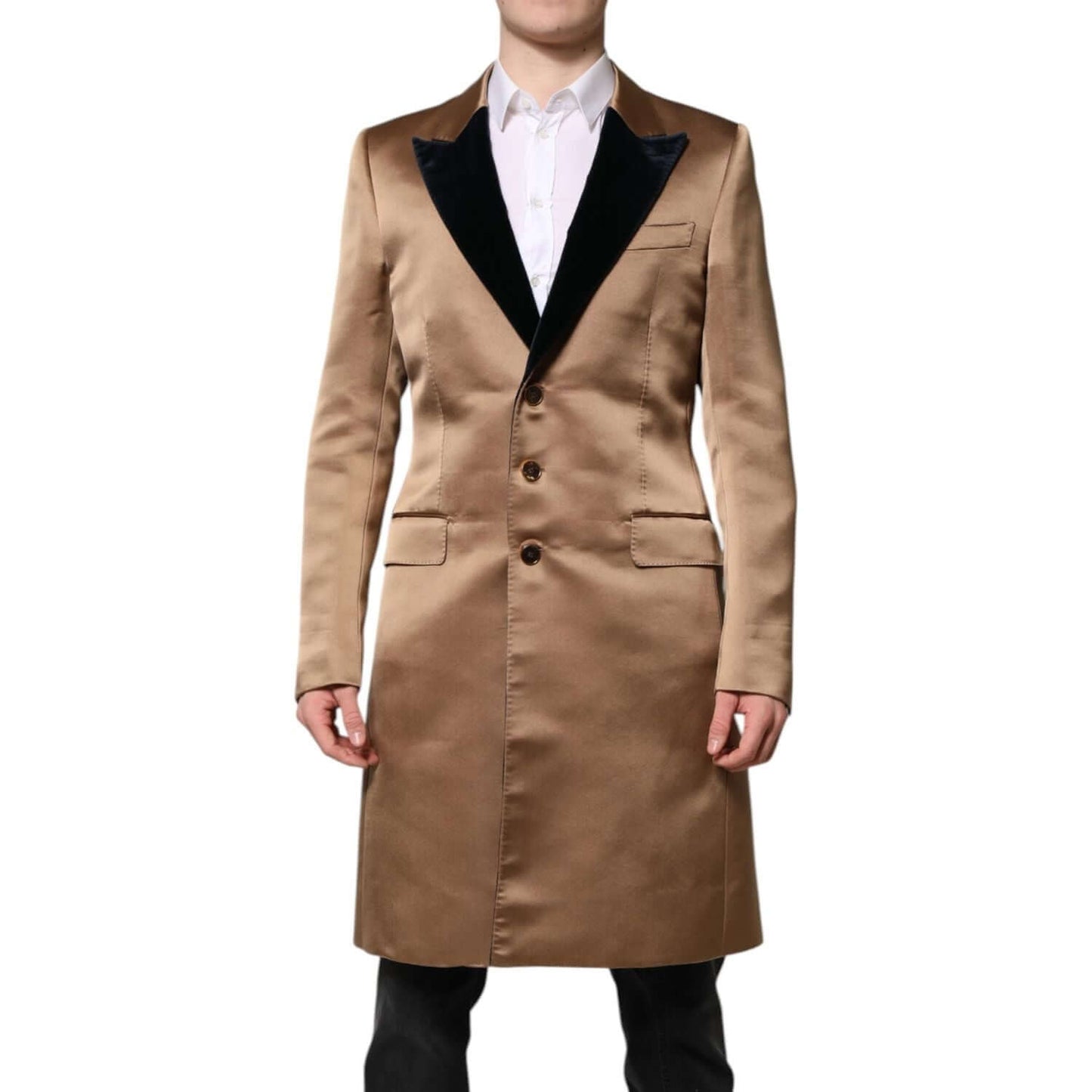 Dolce & Gabbana Brown Silk Single Breasted Trench Coat Jacket