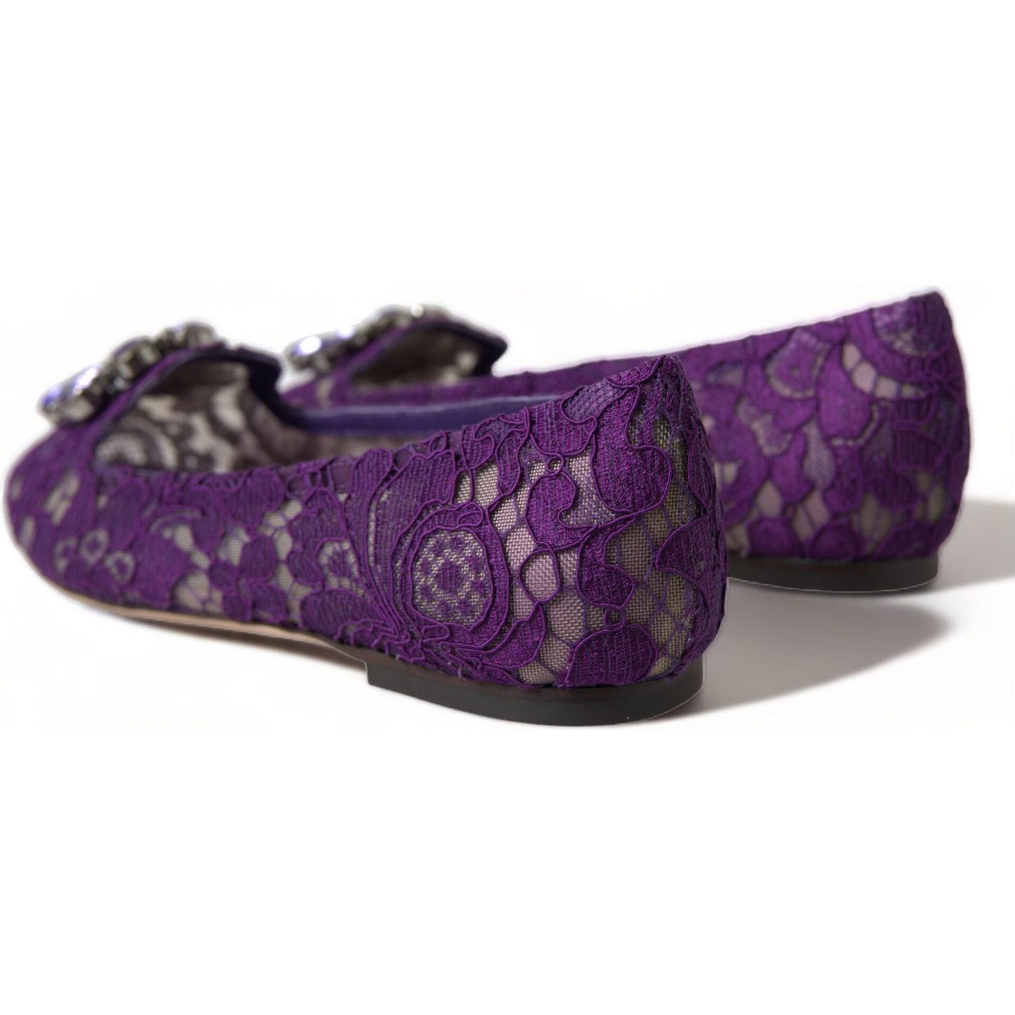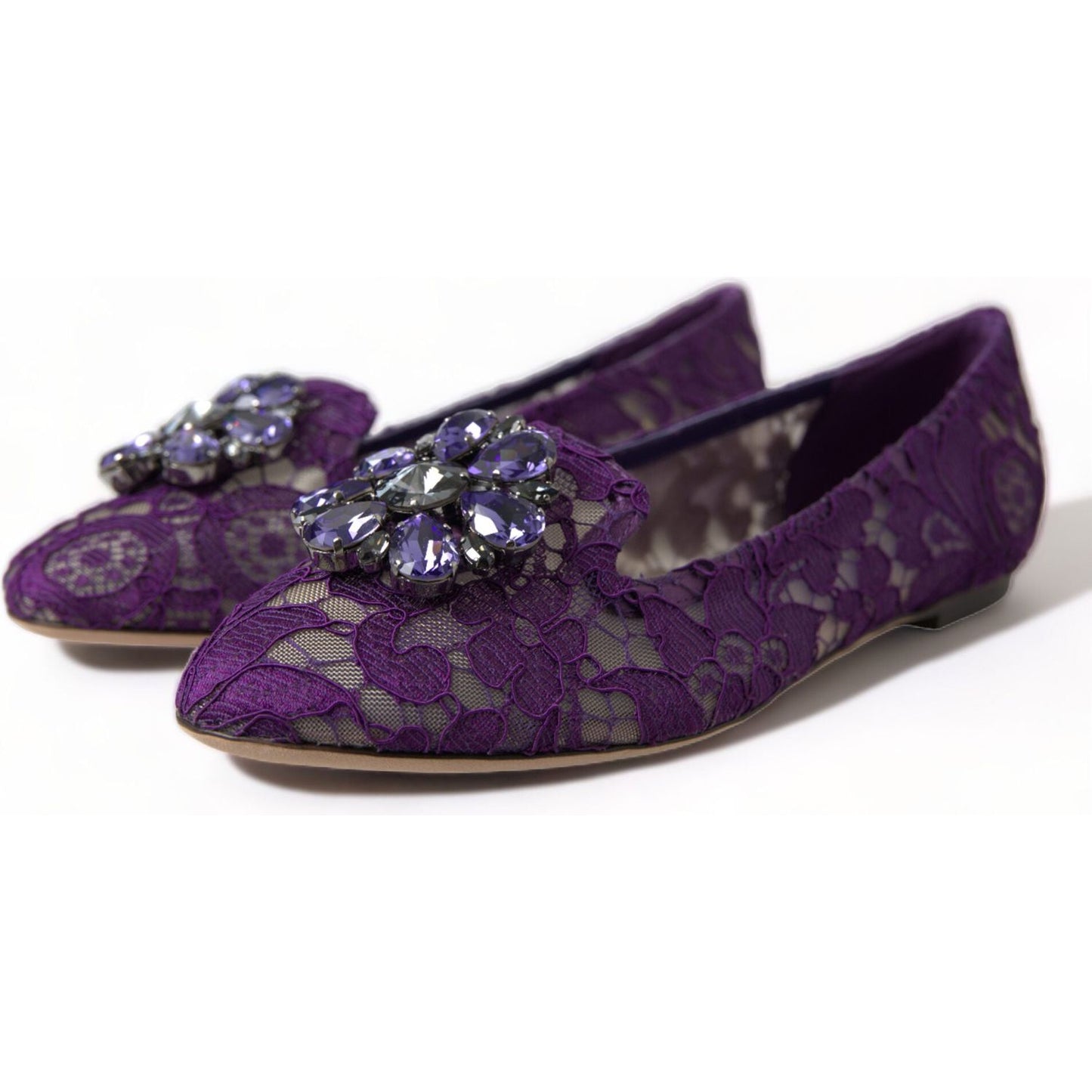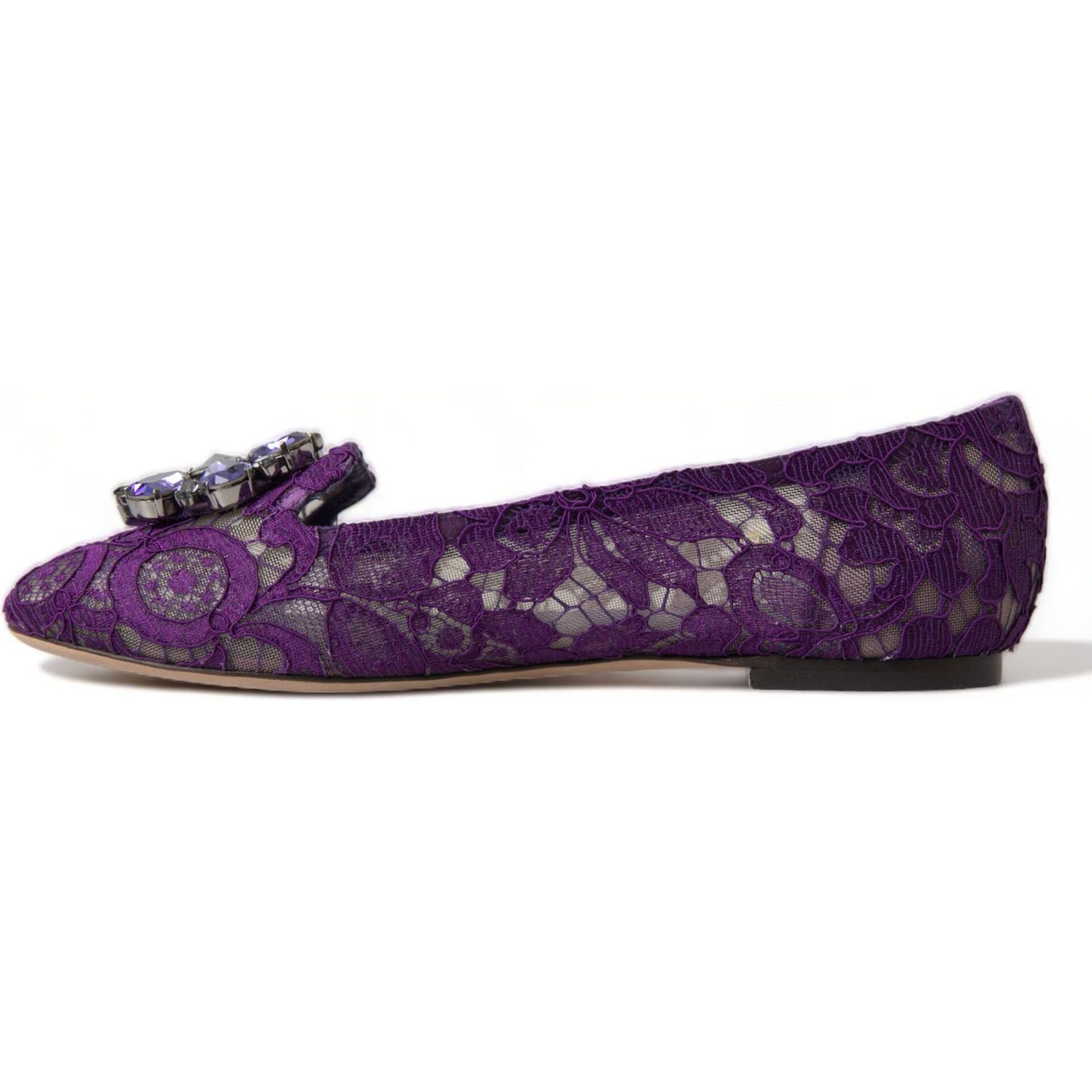 Dolce & Gabbana Purple Vally Taormina Lace Crystals Flats Shoes