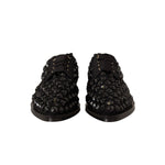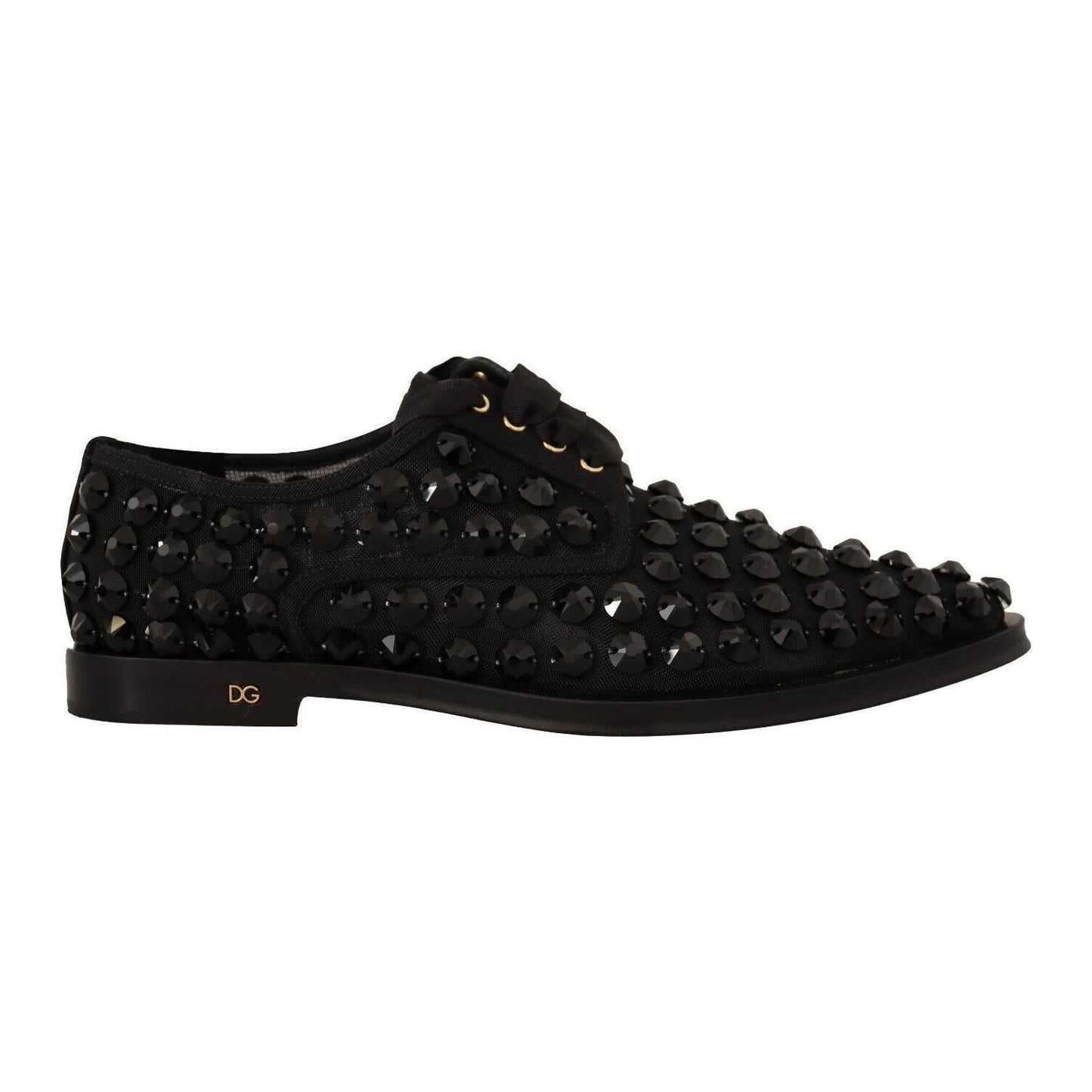 Dolce & Gabbana Black Lace Up Studded Formal Flats Shoes
