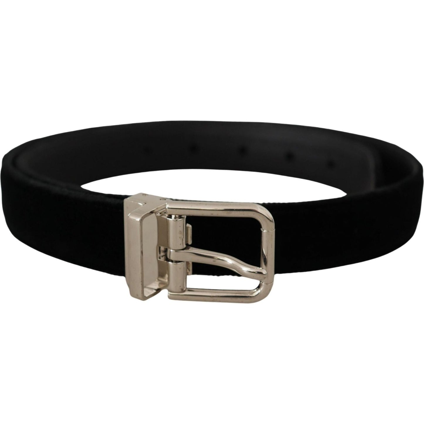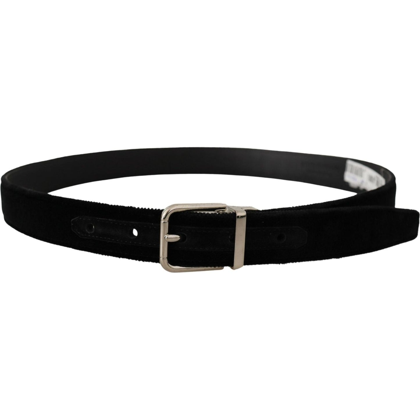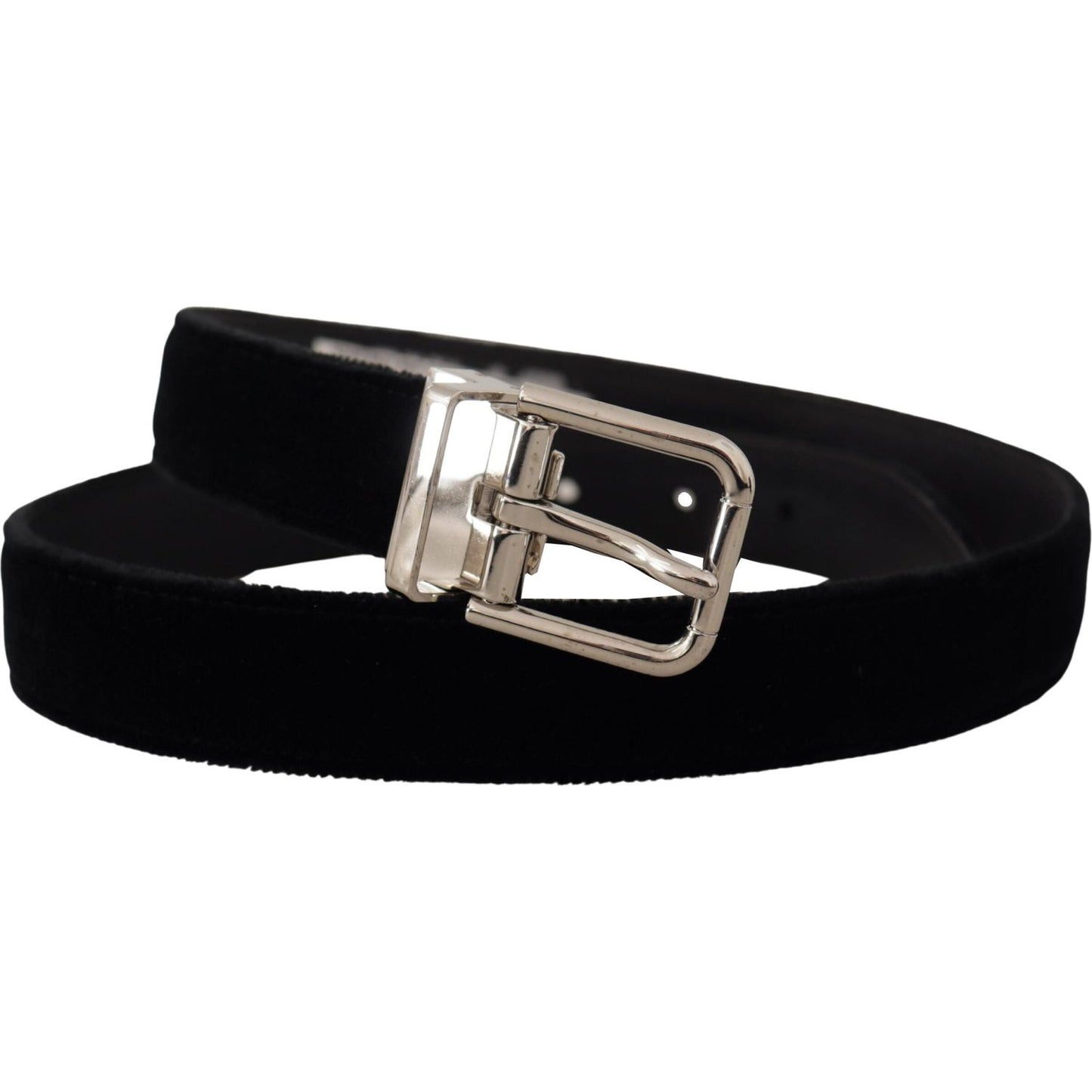 Dolce & Gabbana Black Velvet Silver Tone Metal Logo Buckle Belt