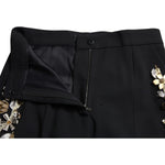 Dolce & Gabbana Black Floral Applique High Waist Tapered Pants