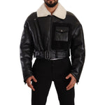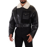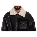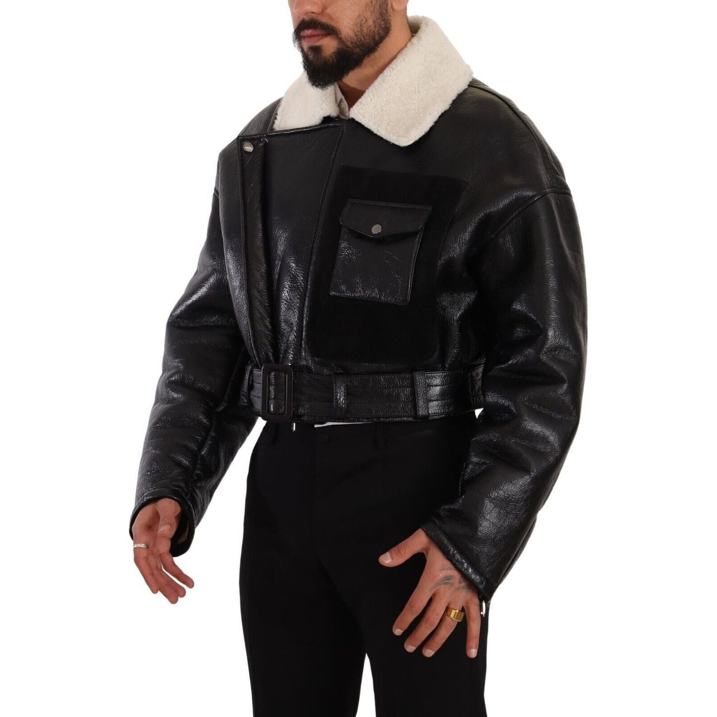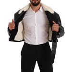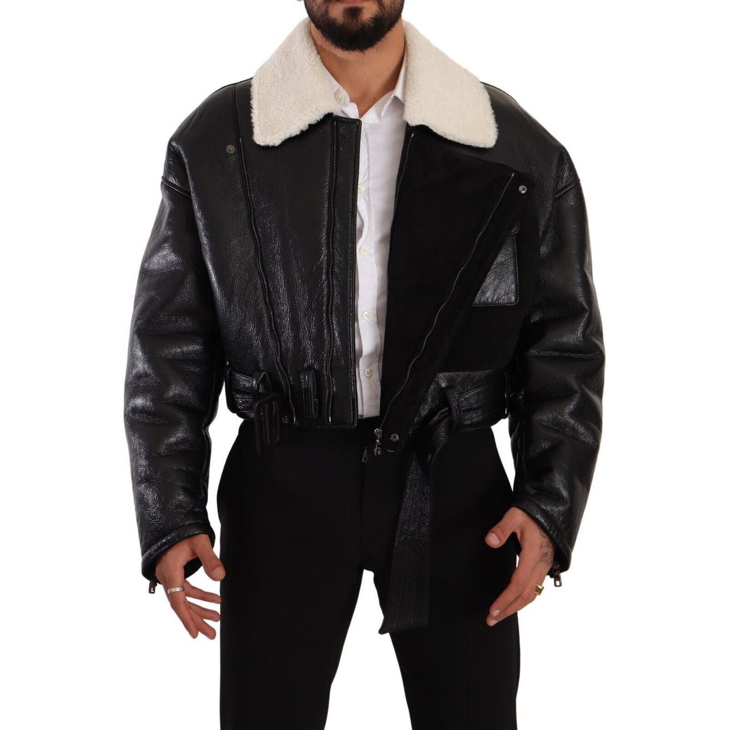 Dolce & Gabbana Black Leather Shearling Biker Coat Jacket
