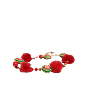 حزام توررو من دولتشي آند غابانا مصنوع من الذهب والنحاس والفراء الأحمر والكريستال
