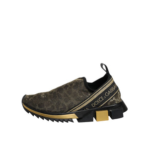 Dolce & Gabbana Gold Glitter Leopard Sorrento Sneakers Shoes