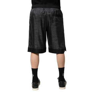 Dolce & Gabbana Gray Black Silk DG Logo Men Bermuda Shorts