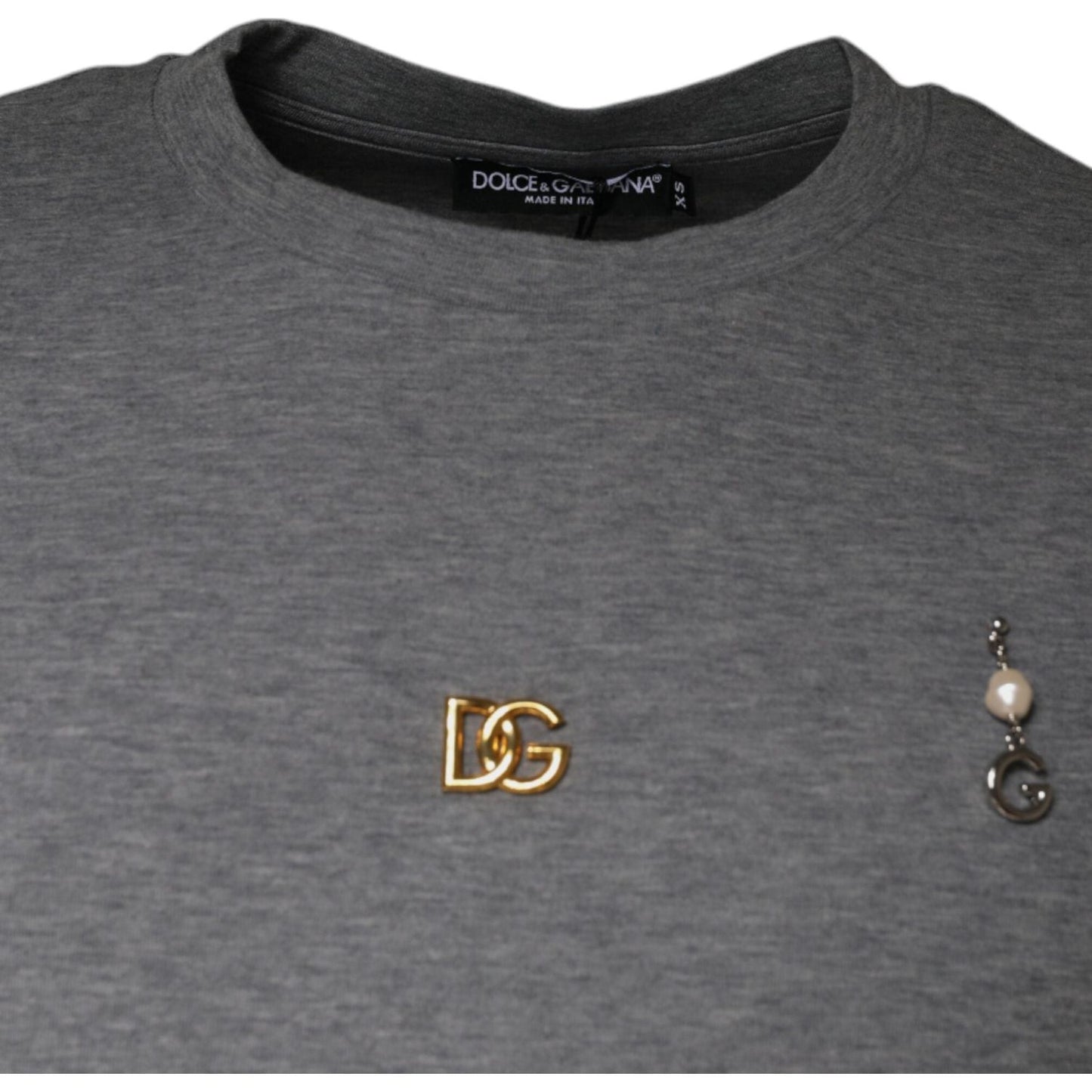 Dolce & Gabbana Gray Cotton Blend Embellished Tee T-shirt