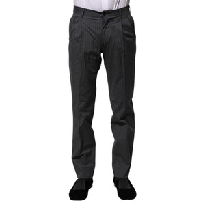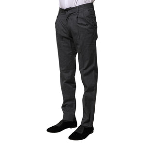 Dolce & Gabbana Gray Striped Cotton Formal Pants