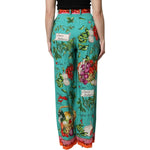 Dolce & Gabbana Green Silk Printed Straight Pants