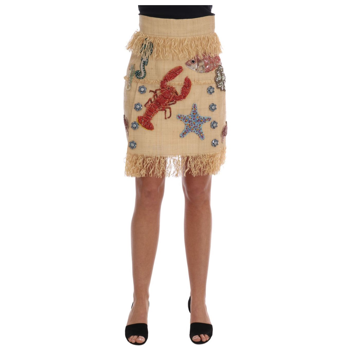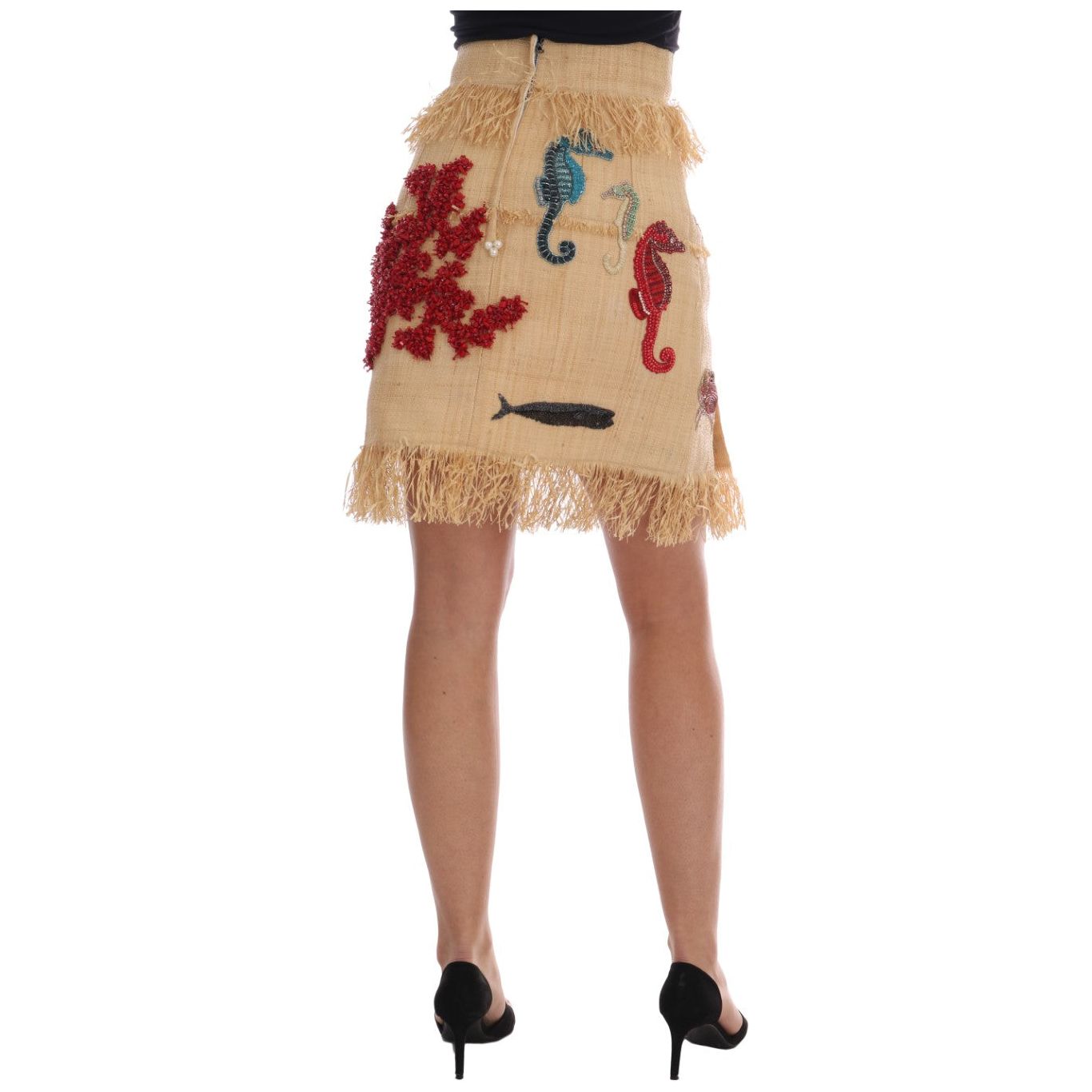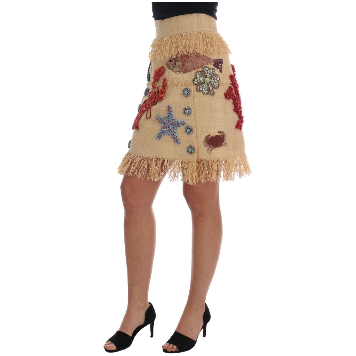 • Dolce & Gabbana Crystal Beige Palm Fiber Skirt