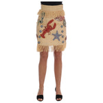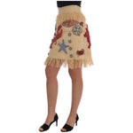 Dolce & Gabbana Crystal Beige Palm Fiber Skirt