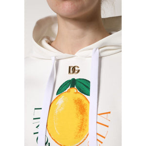 Dolce & Gabbana Ivory Cotton Printed Hooded Pullover Sweater