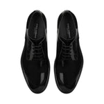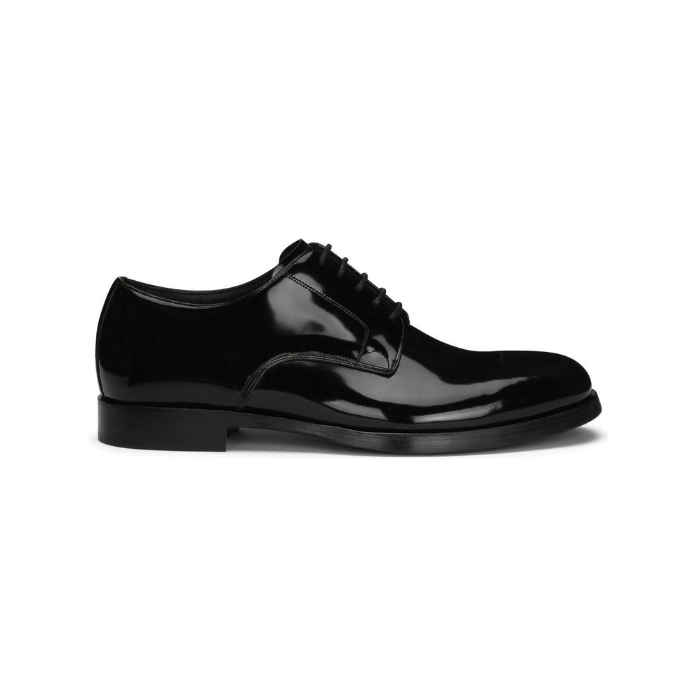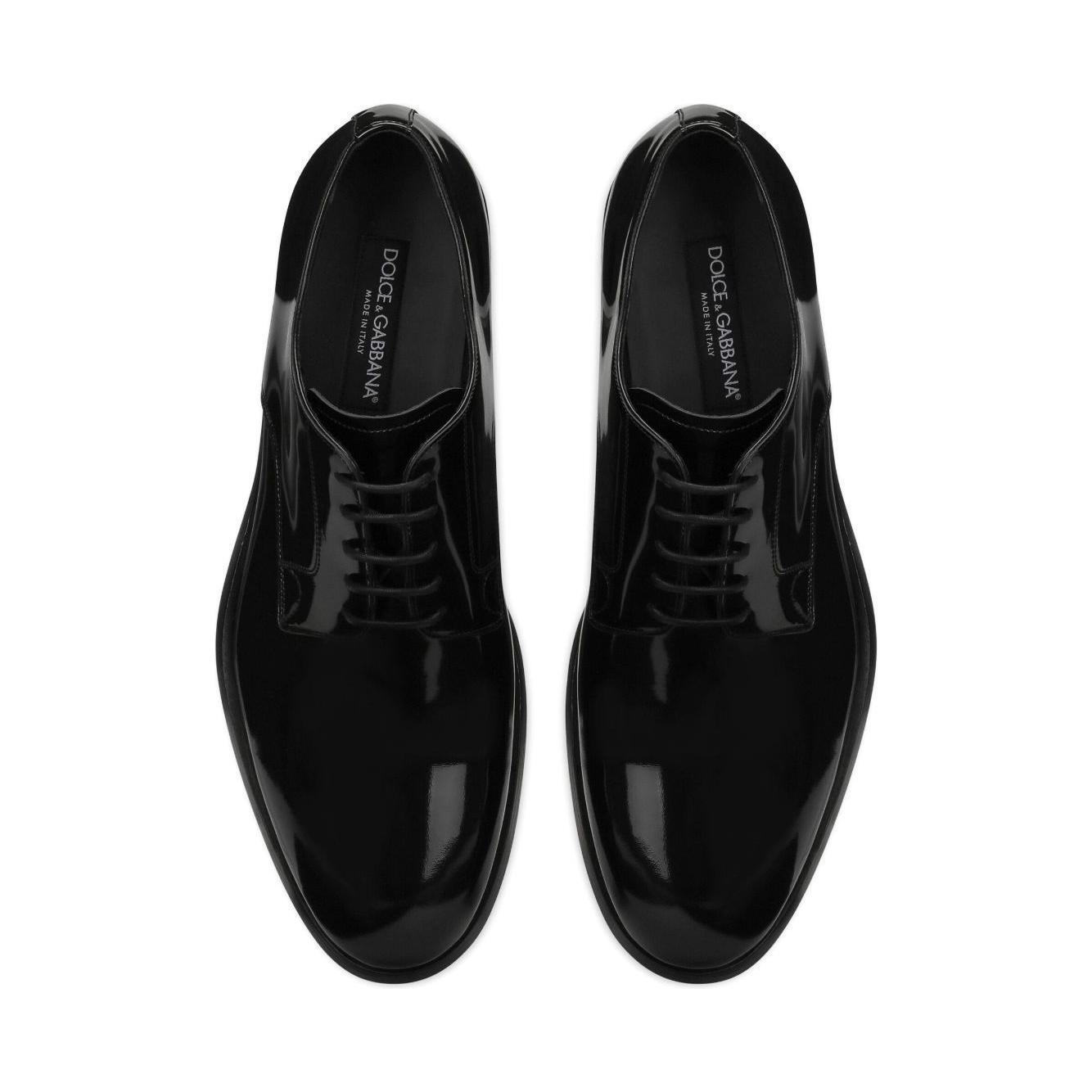 lace-up patent-finish derby shoes from DOLCE & GABBANA featuring black, calf leather, patent finish, tonal stitching, almond toe, front lace-up fastening, branded leather insole and flat leather sole. Leather brogues Size and Fit - Heel 1,2 in / 3 cm; Platform 0,6 in / 1,5 cm