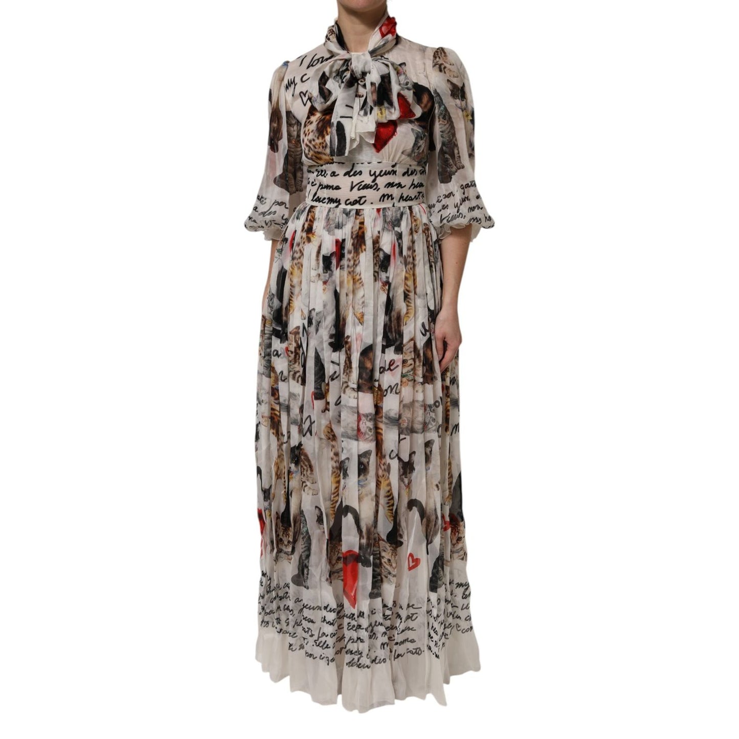 Dolce & Gabbana Multicolor Animal Print Silk Ascot Maxi Dress