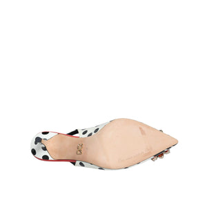Gorgeous 100% Authentic Dolce & Gabbana leather slingback heels pumps with polka dots and floral print and crystal embellishment.