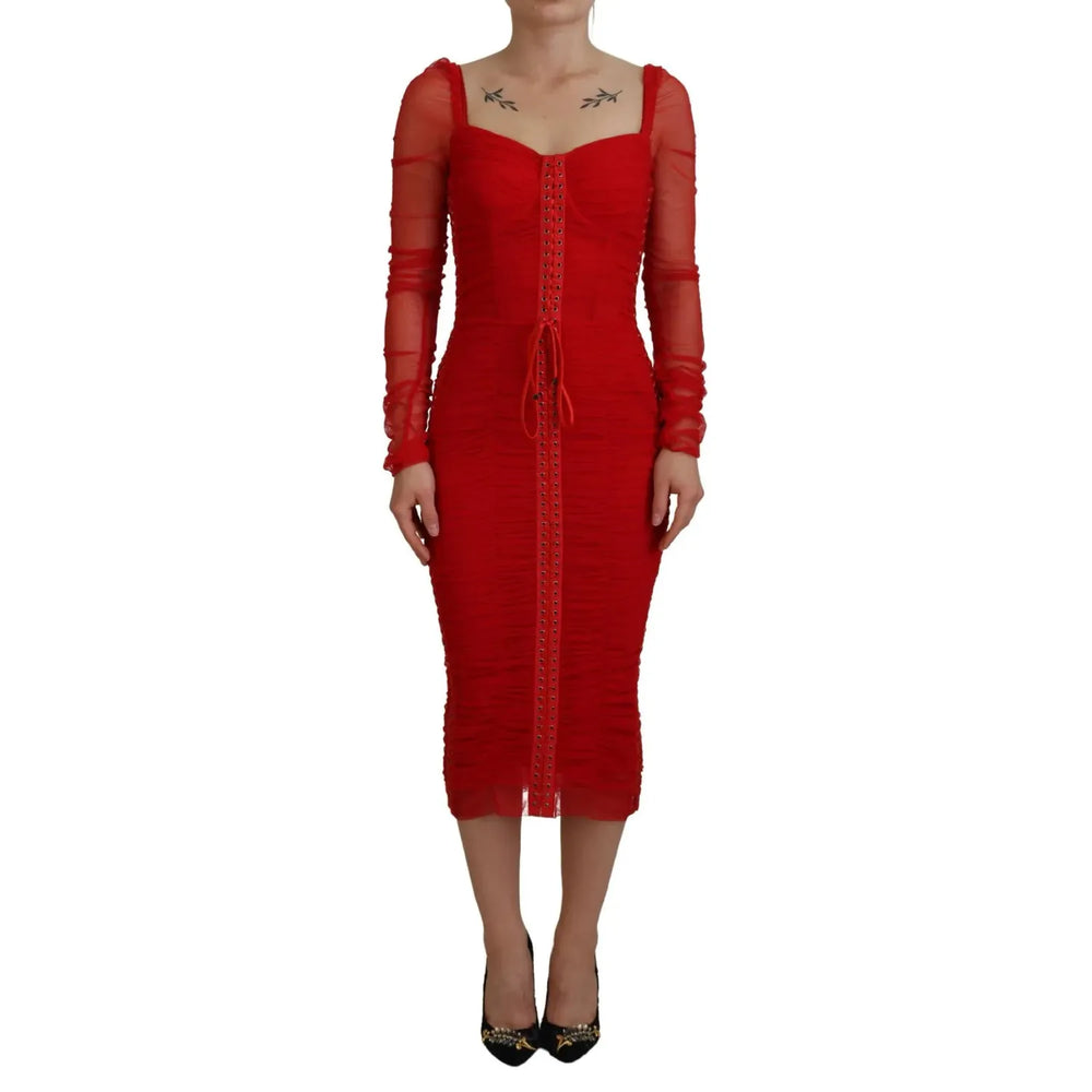 Dolce & Gabbana Red Mesh Trim Bodycon Sheath Midi Dress