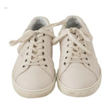 حذاء رياضي رجالي كاجوال من الجلد باللون الأبيض من دولتشي آند غابانا بشعار