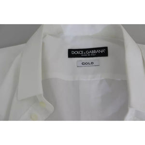 Dolce & Gabbana White Cotton Formal Dress Top GOLD Shirt