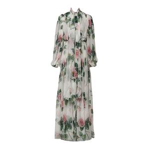Dolce & Gabbana White Floral Roses Silk Maxi Long Gown Dress