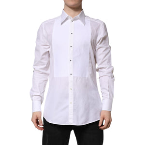 Dolce & Gabbana White GOLD Cotton Long Sleeves Formal Shirt