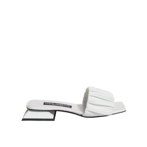 Dolce & Gabbana White Leather Slides Flats Sandals Shoes