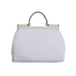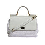 Dolce & Gabbana White Rafia Leather Top Handle Crossbody Bag