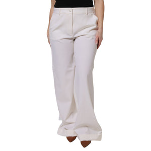 Dolce & Gabbana White Wool Mid Waist Wide Leg Pants