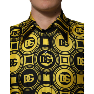 Dolce & Gabbana Yellow Silk Silver DG Logo Geometric T-shirt