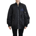 جاكيت بومبر نسائي بسحاب كامل وطبعة شعار Dsquared² باللون الأسود