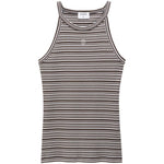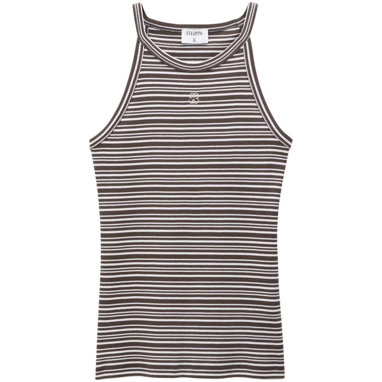 coffee brown/chalk white organic cotton fine ribbed horizontal stripe print embroidered monogram to the front crew neck slip-on style halterneck racerback straight hem This item is made from at least 50% organic materials. Learn more about what makes a product Conscious on our Conscious Criteria page Striped tank top Size and Fit - This piece fits true to size. We recommend you get your regular size. Model is 1,75m / 5ft 8in wearing size S