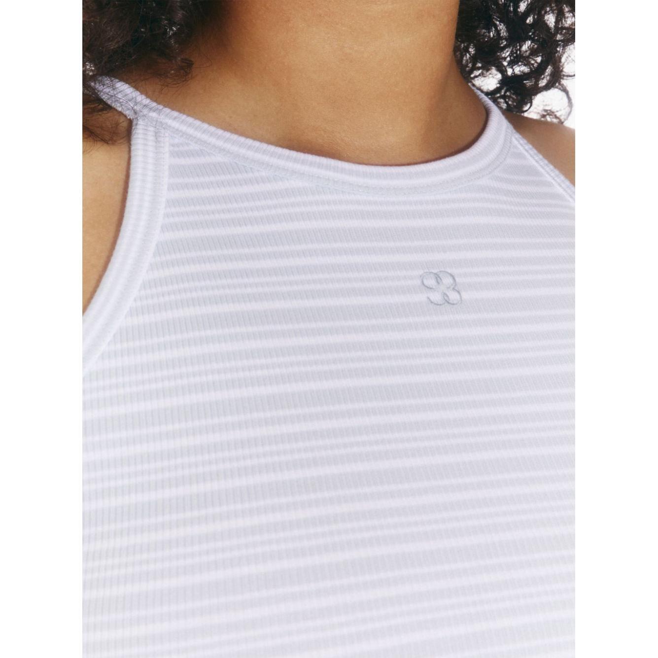 blue-grey/chalk white organic cotton fine ribbed horizontal stripe print embroidered monogram to the front halterneck sleeveless racerback straight hem This item is made from at least 50% organic materials. Learn more about what makes a product Conscious on our Conscious Criteria page Striped tank top Size and Fit - This piece fits true to size. We recommend you get your regular size. Model is 1,75m / 5ft 8in wearing size S