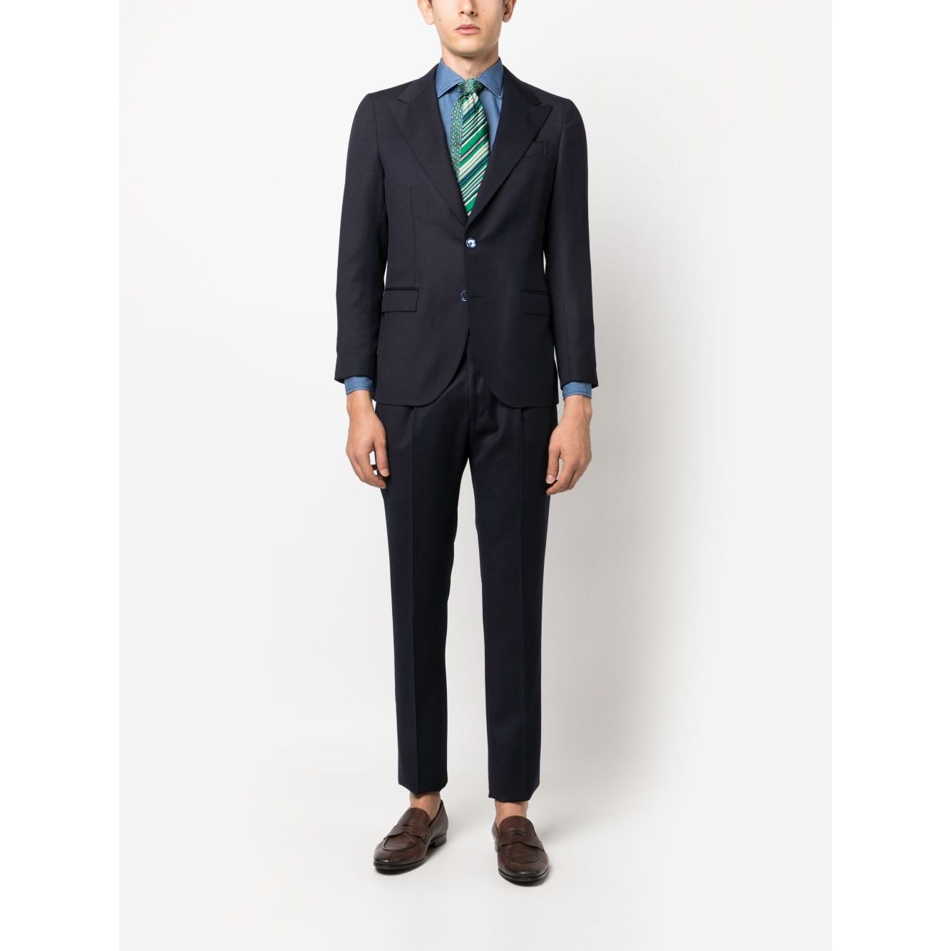 navy blue cotton spread collar front button fastening long sleeves buttoned cuffs rear curved hem Napoli cotton shirt