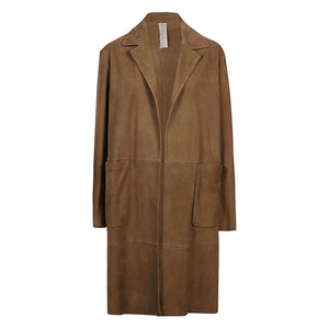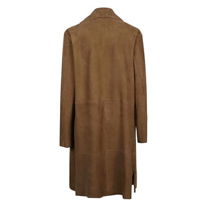 Medium length coat, long sleeves, front pockets and pointed collar. Suede midi coat Size and Fit - This piece fits true to size. We recommend you get your regular size. Model is 1,75m / 5ft 8in wearing size 40 (IT)