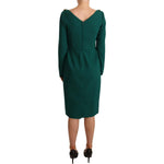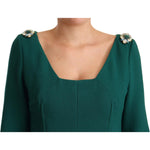 فستان دولتشي آند غابانا متوسط الطول باللون الأخضر الزمردي مع بروش من الكريستال