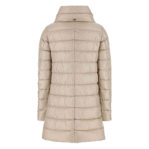 Scollatura a V nell'inconfondibile stile Herno, realizzata in nylon Ultralight 200 g. L'imbottitura iniettata in finissima piuma d'oca e il nylon effetto seta rendono il capo estremamente leggero e delicato al tatto. Ameli midi down jacket