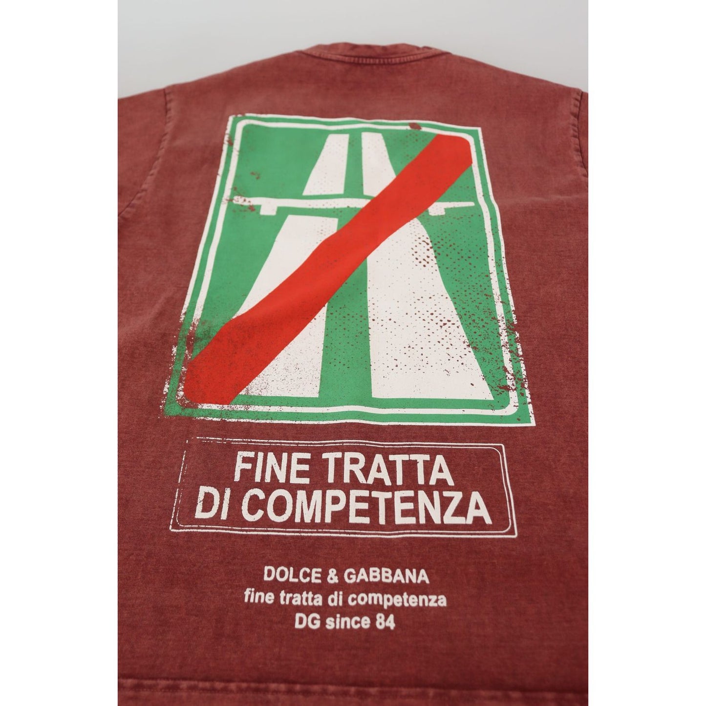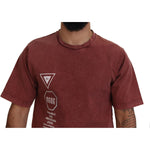 تي شيرت قطني أنيق مطبوع باللون العنابي من دولتشي آند غابانا
