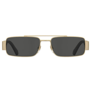 • Unisex MOSCHINO MOD. MOS184_S metal sunglasses with black lenses and gold frames.