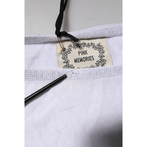 PINK MEMORIES White Cotton Short Sleeves Round Neck Blouse Top