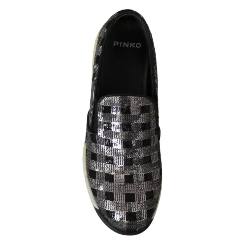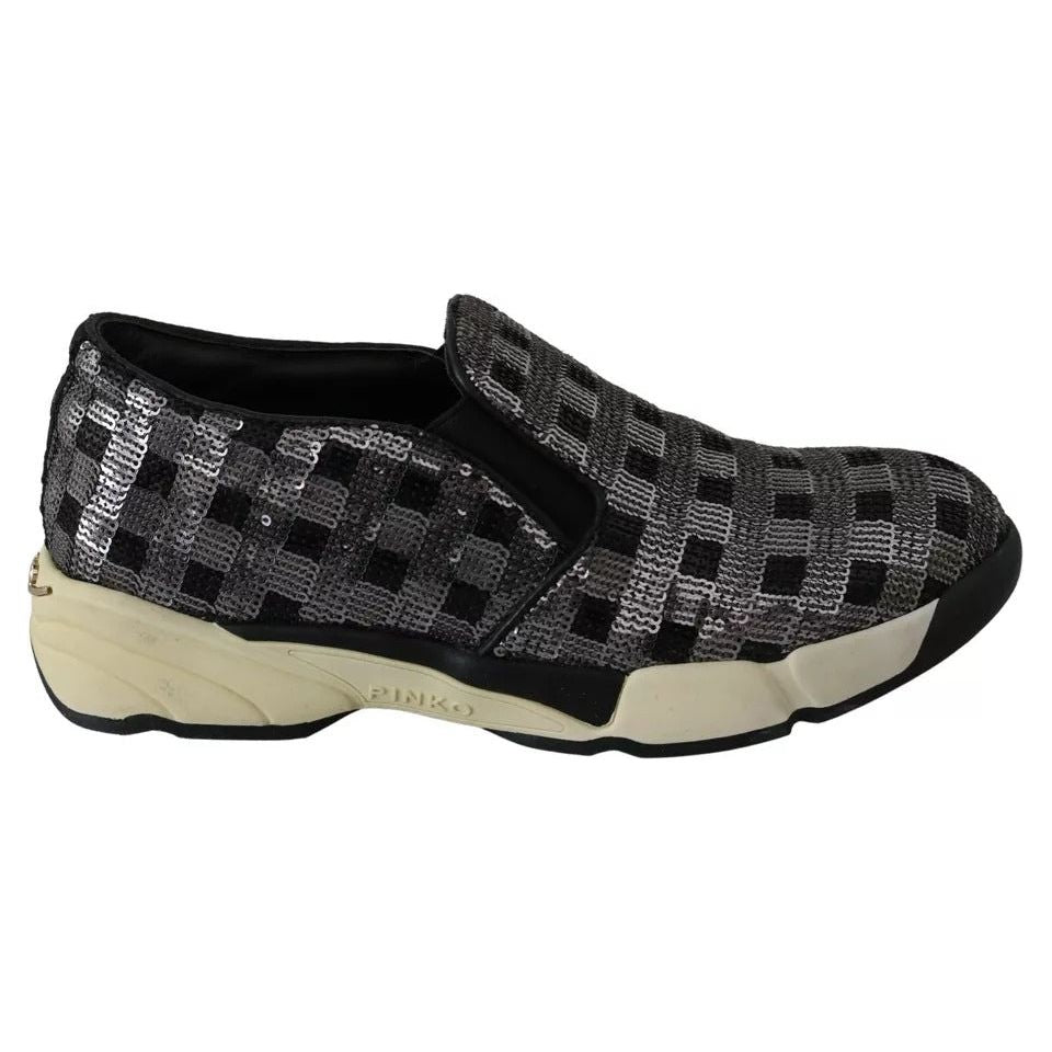 PINKO Silver Black Slip-on Sequence Design Sneakers Shoes