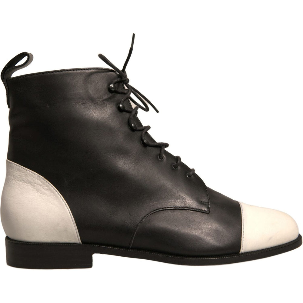 Sergio Rossi Black White Leather Lace Up Flats Ankle Boots Shoes