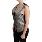 سترة دولتشي آند غابانا الأنيقة المصنوعة من قماش بروكيد باللون الفضي بدون أكمام