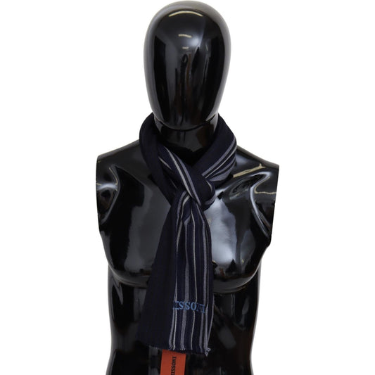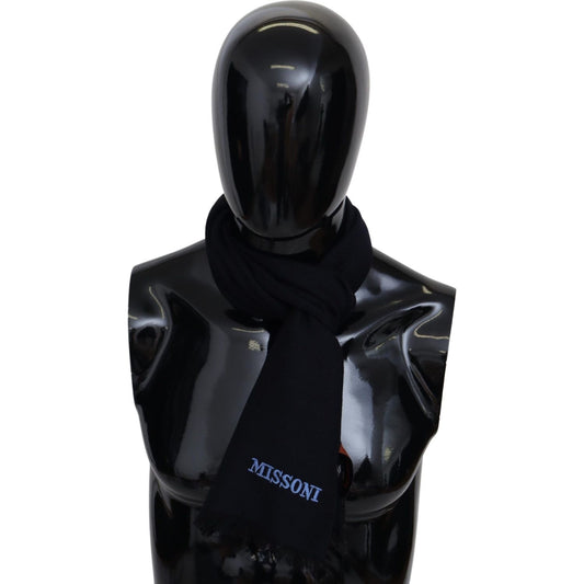 Missoni Black Blue Striped Wool Unisex Wrap scarf