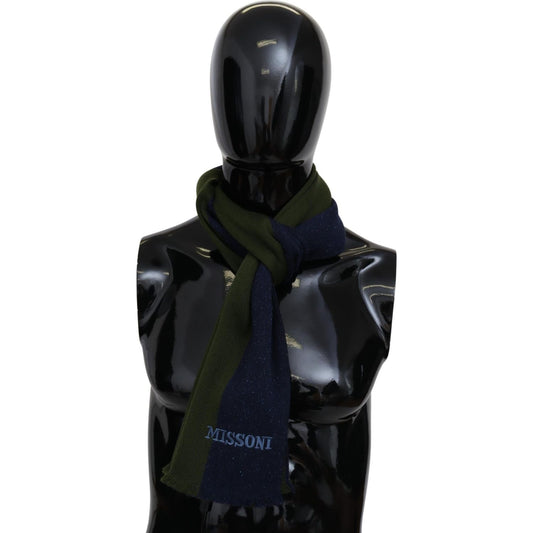 Missoni Green Striped Wool Unisex Neck Wrap Shawl Blue