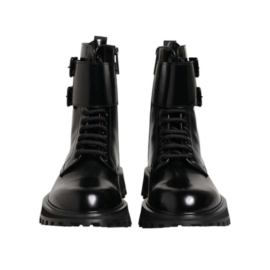 Dolce & Gabbana Black Leather Lace Up Mid Calf Boots Shoes