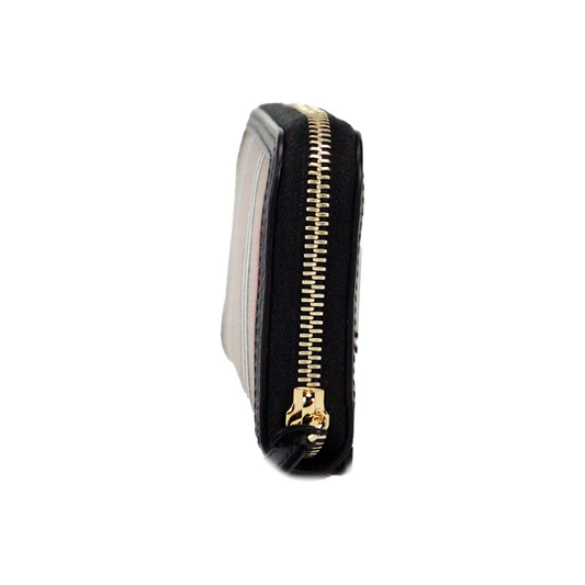 Burberry Ellerby Black Leather Icon Stripe Canvas Zip Around Continental Wallet