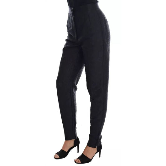 Dolce & Gabbana Black Floral Brocade High Waist Pants