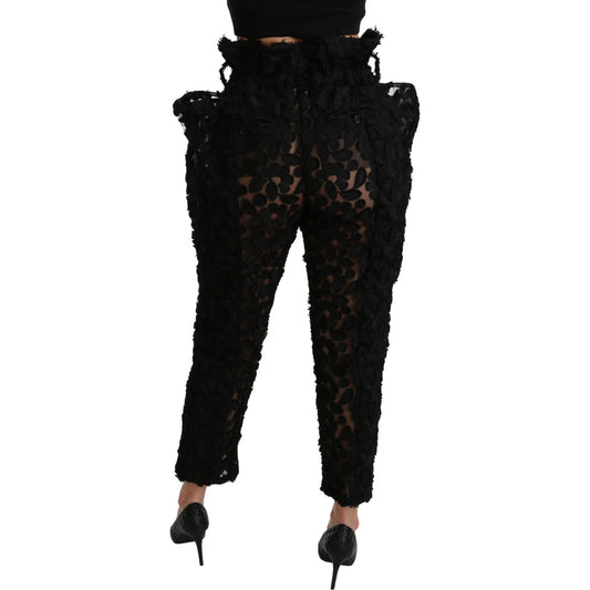 Dolce & Gabbana Black Floral Lace Tapered High Waist Pants