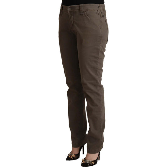 Ermanno Scervino Brown Cotton Low Waist Slim Fit Pants